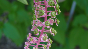 Der Name Phytolacca bedeutet rote Pflanze und bezieht sich auf den roten Farbstoff der Beere. Sie gehört zur Familie der Phytolaccaceae, einer Familie mit ca 125 Arten von Bäumen, Sträuchern, Kletter- und Krautpflanzen. Sie ist in den wärmeren Gebieten von Amerika, Afrika und Asien heimisch, kommt aber auch in Westeuropa vor. Phytolacca ist ein mehrjähriges Kraut, wird bis zu 3m hoch, hat ovale Blätter, fleischige giftige Wurzeln und weißpurpurne Blüten, aus denen die dunkelpurpurnen Beeren entstehen. Die Beeren sind zwar giftig, verlieren aber ihre Giftigkeit zum Teil durch Kochen. Medizinal werden Wurzeln, Beeren und Blätter verwendet. Phytolacca wirkt hs. die Drüsen ( Brustdrüse, Ohrspeicheldrüse, Mandeln, Hoden) , die Haut und die Knochen, Sehnen und Muskeln. Kent hat es als pflanzliches Mercurius bezeichnet.